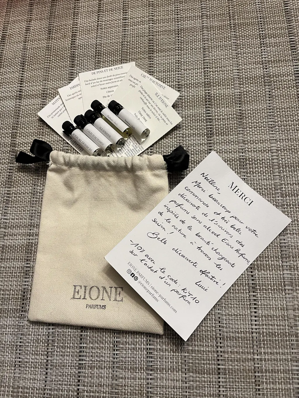 Très belle présentation pour ce kit découverte. Chaque échantillon est accompagné d’une fiche contenant la liste des composants ainsi qu’une jolie citation en correspondance avec l’univers de chaque parfum. Merci Lucie pour ce gentil message pour cette belle découverte olfactive !!!