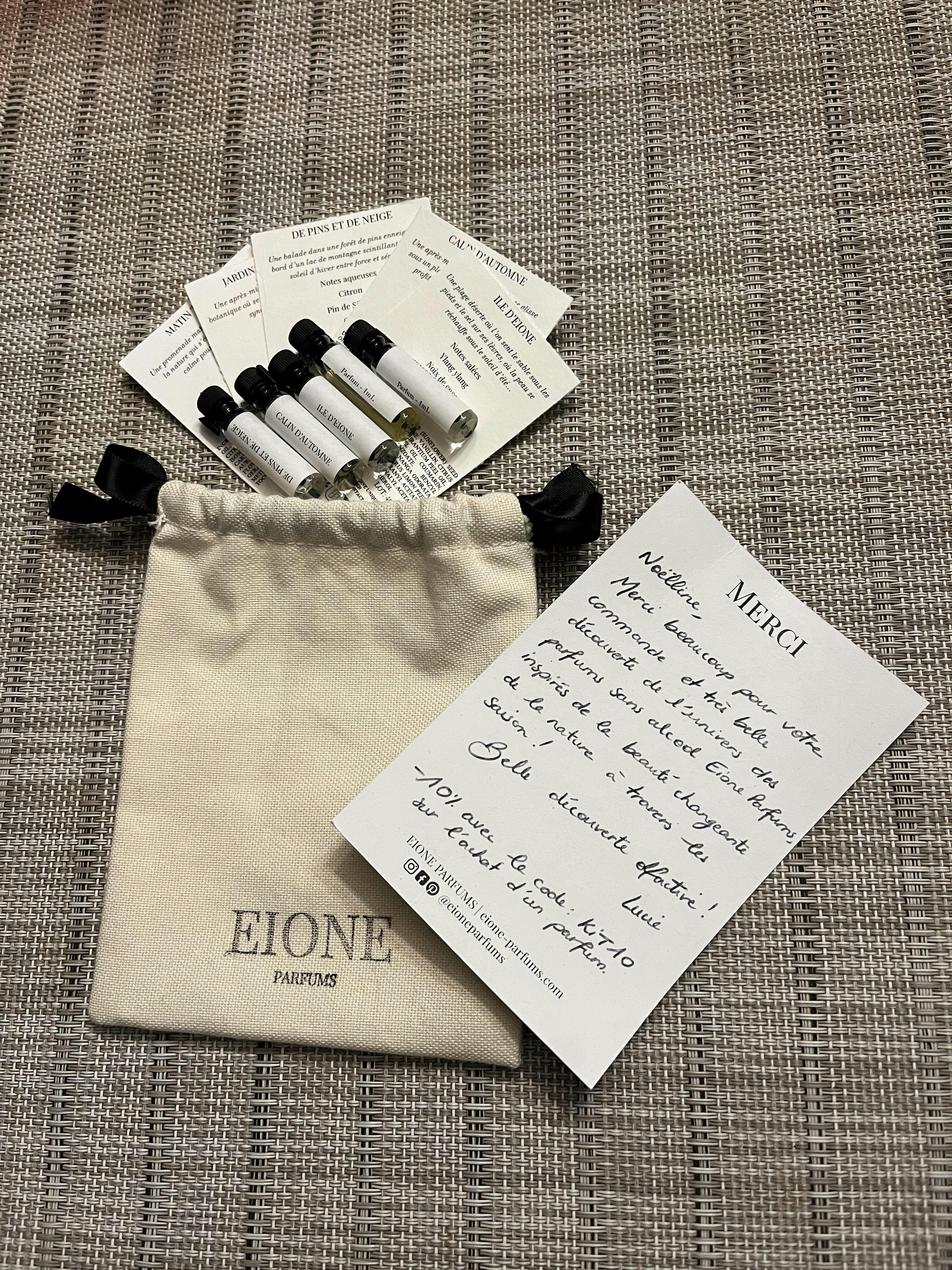 J’ai adoré le kit découverte ! Les senteurs sont raffinées, originales et parfaitement équilibrées. Le format est idéal pour tester tranquillement chaque parfum, et la qualité est au rendez-vous. Mention spéciale pour la démarche naturelle et responsable d’Eione — un vrai coup de cœur ! 💛